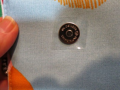 Lots of bags use magnetic snaps. These pictures demonstrate the use of magnetic snaps using the "Girlfriend Bag" by Among Brenda's Quilts. Brenda graciously gave me permission to use her photos.